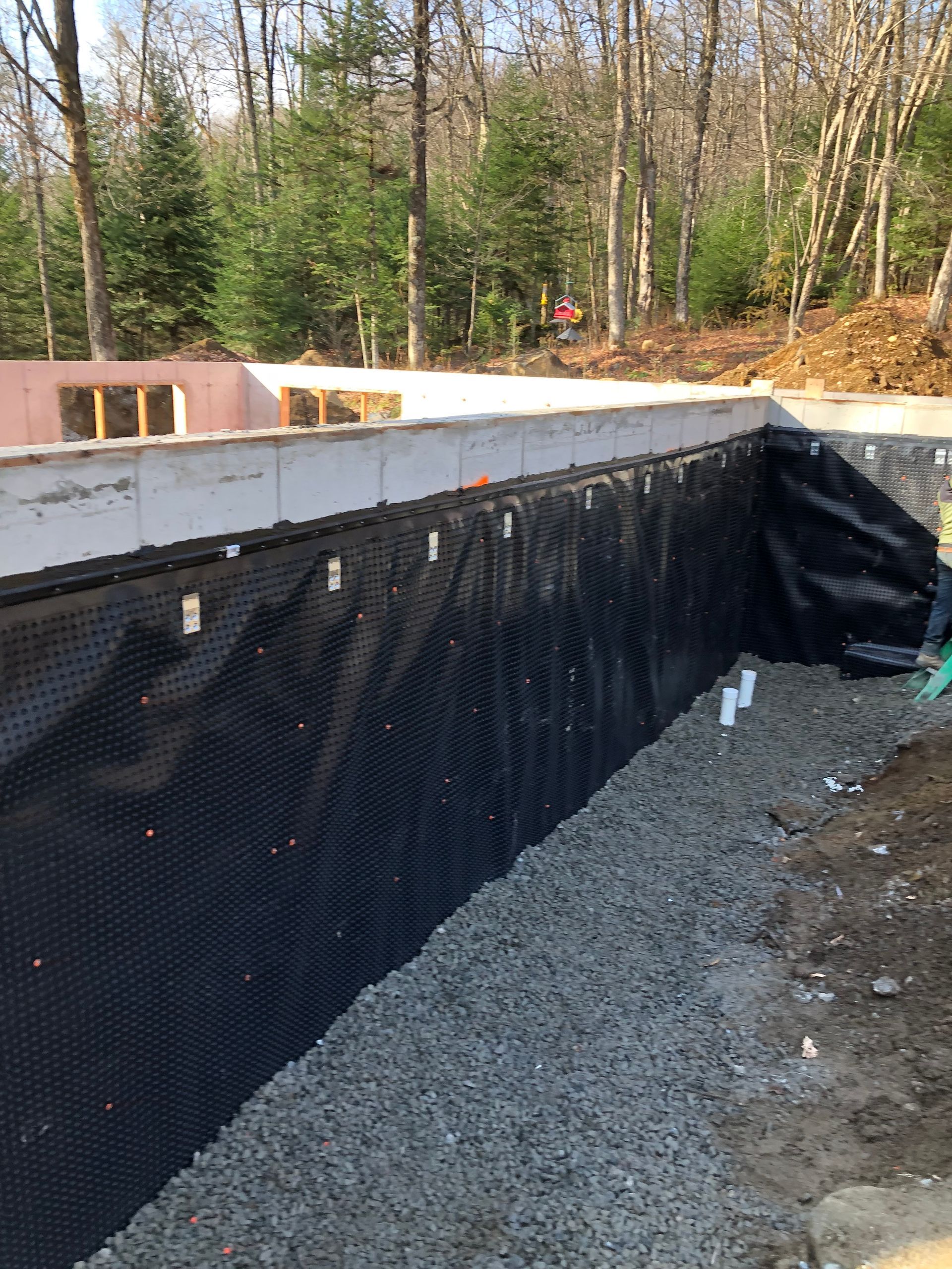 Ajout d’une membrane de protection sur les fondations afin de prévenir toute infiltration d’eau et prolonger la durée de vie de la structure.